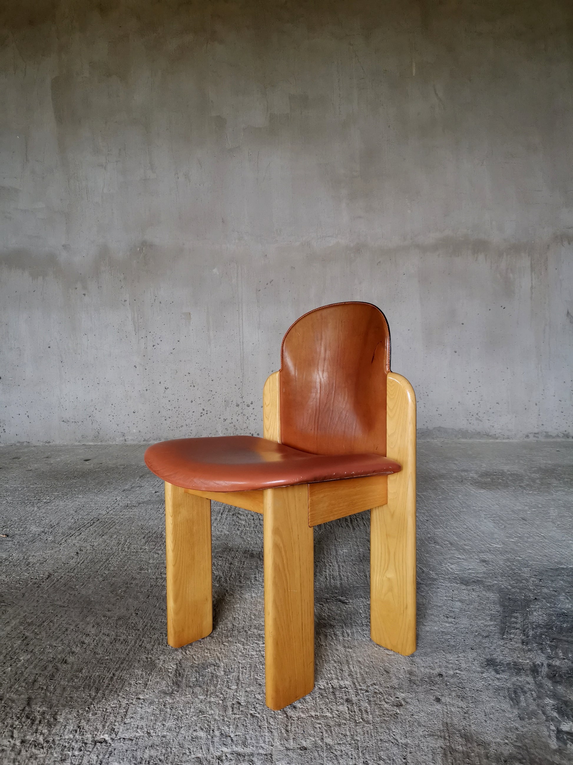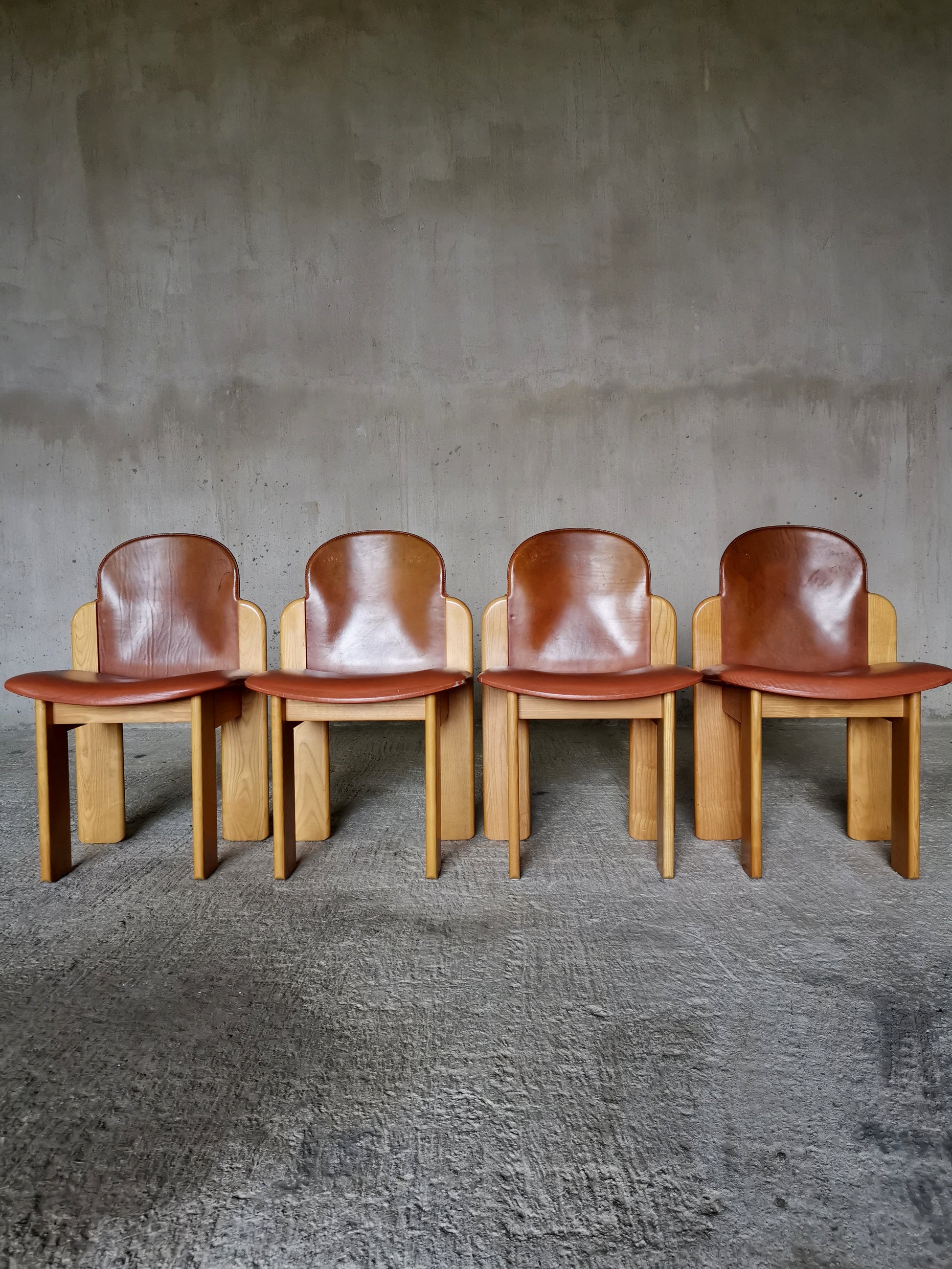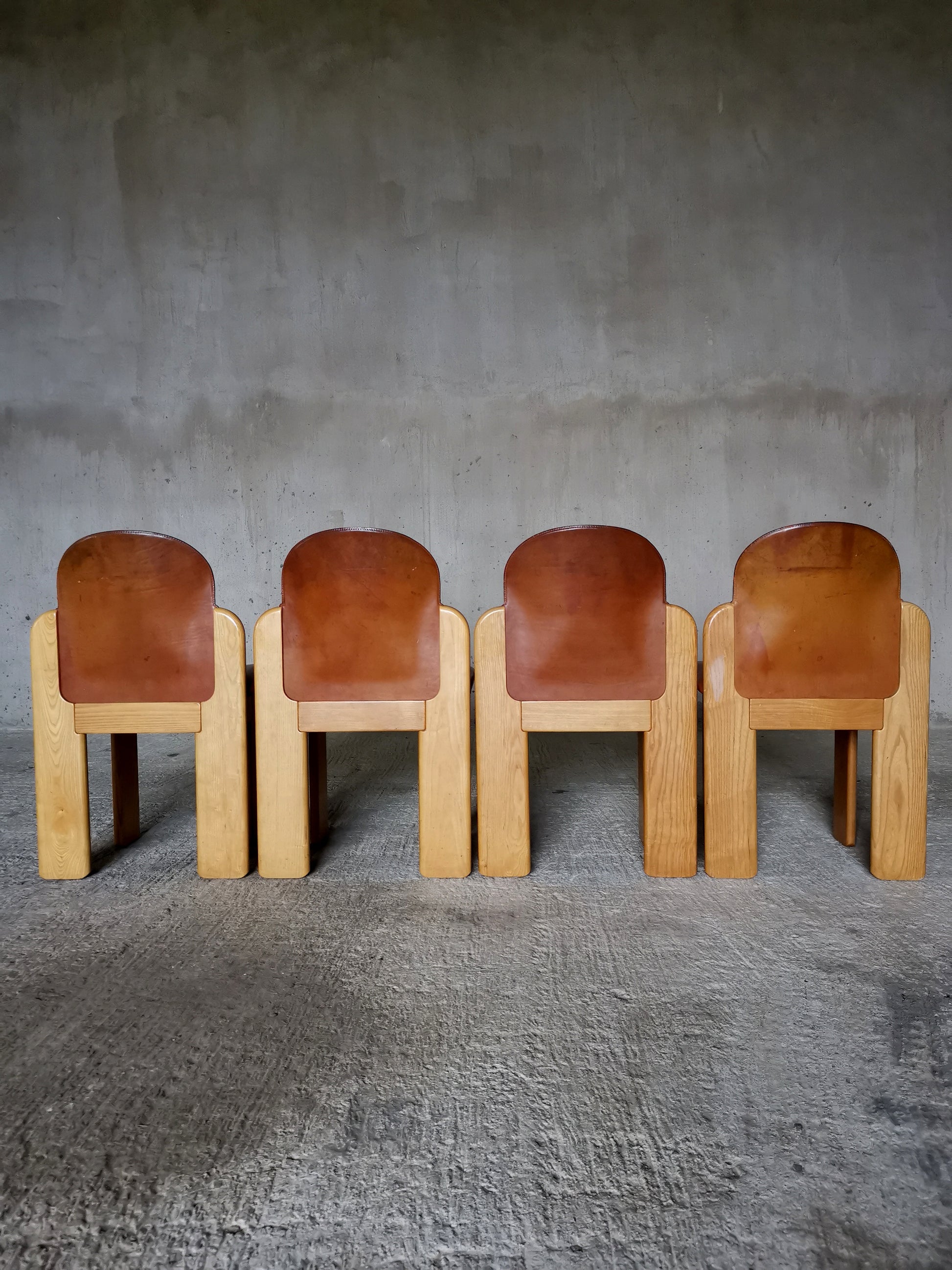 Very rare set of four dining chairs in ash wood and leather, design Silvio Coppola.
